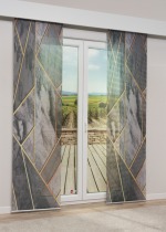 Diese Schiebegardine in stilvollem Steingrau beeindruckt auf besondere Weise, da sie die Idee des Designs perfekt aufgreift. Die leuchtenden Konturen der geometrischen Formen in sattem Gelb schaffen einen faszinierenden Kontrast und verleihen dem Design durch das Zusammenspiel mit dem dunklen Grau einen fast goldenen Schimmer. Setzen Sie zusätzliche Grautöne, Petrol und Türkis sowie Accessoires in warmen Metallictönen ein, um ein harmonisches, luxuriöses Ambiente zu schaffen.