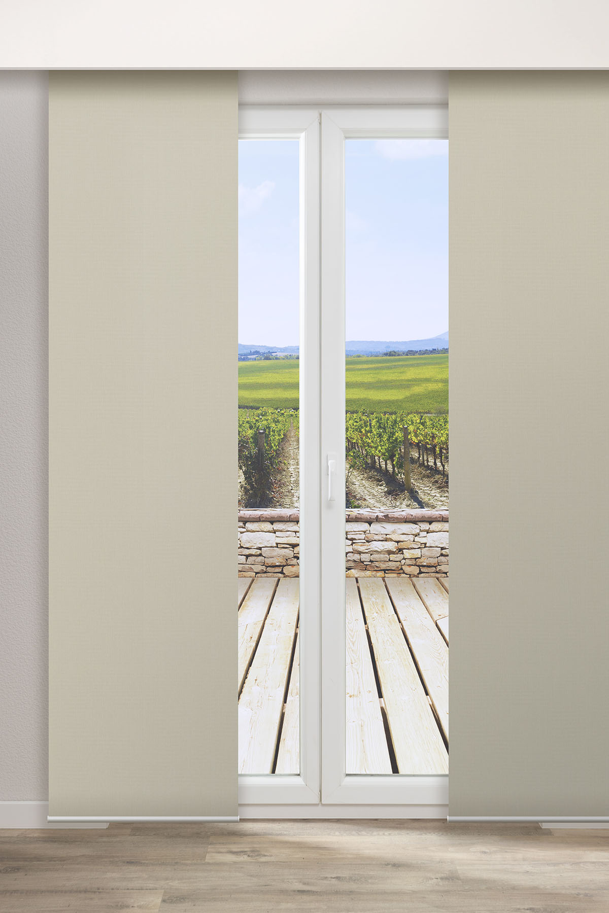 Dieser unifarbene Flächenvorhang mit natürlich anmutender Oberfläche ist aufgrund seiner dezenten Gestaltung eine schöne Umrahmung und Ergänzung des Interieurs. Dabei kommt hier den praktischen Eigenschaften wohl eine noch größere Bedeutung zu. Die Voraussetzung für die Objekteignung ist durch die schwere Entflammbarkeit des Gewebes erfüllt. Der Flächenvorhang mit weißer Rückseite besteht aus recyceltem Polyester und bietet einen guten Wärmeschutz, den er im Wintergarten genauso ausspielen kann. Büros wie Arbeitszimmer profitieren außerdem von dem Blendschutz. Der Flächenvorhang aus Dimoutstoff versteht es, den Raum angenehm zu verdunkeln und zum Beispiel im Wohnzimmer, Schlaf- und Kinderzimmer für eine lauschige Dämmerungsatmosphäre zu sorgen. Auch wenn noch eine kleine Menge Restlicht durch den Stoff kommt, vor neugierigen Blicken bleiben Sie mit diesem zuverlässigen Flächenvorhang als Sichtschutz stets bewahrt.