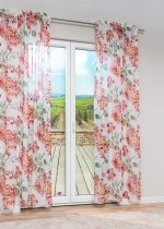 Dieser Dekoschal hüllt den Raum in ein wunderbares Blütenmeer aus lebendigen Farben, erzeugt dabei eine warme und naturnahe Atmosphäre. Das florale Muster schmückt die Gardine in vollem Umfang. Damit kann sich dieses Modell sowohl in klassische wie in moderne Wohnstile harmonisch einfügen. Der Schal ist nicht nur dekorativ, sondern auch überaus praktisch und lässt sich ganz Ihren Bedürfnissen anpassen. Eine individuelle Anfertigung nach Ihren spezifischen Maßen ist möglich. Die Transparenz des Polyestergewebes sorgt dafür, dass die Räume hell und freundlich bleiben und Sie einen unverstellten Blick auf die blühende Welt vor Ihrem Fenster genießen können. Der Vorhang wird mit Multifunktionsband befestigt. Integriertes Bleiband am oberen Abschluss gewährleistet einen schönen Fall. Zubehör wie Gardinenstangen und Verzierungen können Sie in unserem Shop bestellen. Für die Reinigung empfiehlt sich der Schonwaschgang bei 30°C in der Maschine.