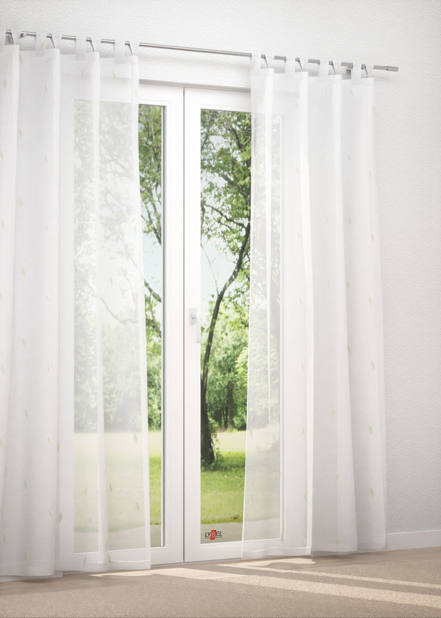 Mit diesem Modell können Sie Einrichtungen hell und freundlich gestalten und haben gleichzeitig eine attraktive, äußerst vielseitige Raumdekoration. Ihre Optik zeichnet sich durch ein mit großen Abständen angelegtes, aber dennoch auffallendes abstraktes Muster aus. Es wirkt, als habe ein Maler hier intuitiv zart schimmernde Pinselstreifen gesetzt, die dem Design eine gewisse Eleganz einhauchen. Dadurch passt er in ein modernes Interieur, gleichzeitig aber auch in klassisch eingerichtete Wohn-, Ess- oder Schlafzimmer. Das an den Seiten und am Abschluss gesäumte Polyestergewebe überzeugt zusätzlich durch seine Funktionalität, auch dank des eingearbeiteten Bleibandes. Der transparente Stoff kann effektvoll mit einfallender Sonne spielen. Ihre vier Wände werden offenen und einladender. Möchten Sie den textilen Raumschmuck reinigen, geht das am besten im Schonwaschgang der Waschmaschine bei 30°C.