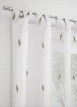 Mit diesem Modell können Sie Einrichtungen hell und freundlich gestalten und haben gleichzeitig eine attraktive, äußerst vielseitige Raumdekoration. Ihre Optik zeichnet sich durch ein mit großen Abständen angelegtes, aber dennoch auffallendes abstraktes Muster aus. Es wirkt, als habe ein Maler hier intuitiv zart schimmernde Pinselstreifen gesetzt, die dem Design eine gewisse Eleganz einhauchen. Dadurch passt er in ein modernes Interieur, gleichzeitig aber auch in klassisch eingerichtete Wohn-, Ess- oder Schlafzimmer. Das an den Seiten und am Abschluss gesäumte Polyestergewebe überzeugt zusätzlich durch seine Funktionalität, auch dank des eingearbeiteten Bleibandes. Der transparente Stoff kann effektvoll mit einfallender Sonne spielen. Ihre vier Wände werden offenen und einladender. Möchten Sie den textilen Raumschmuck reinigen, geht das am besten im Schonwaschgang der Waschmaschine bei 30°C.