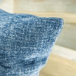 Diese blaue Kissenhülle wirkt frisch und modern. Die Struktur und die angedeutete melierte Optik lassen Assoziationen an die unendliche Weite des Meeres, an maritimes Flair zu. Mit glatten, unifarbenen Kissen in verschiedenen Blautönen können Sie ein Dekokissen mit diesem Bezug daher besonders schön kombinieren. Sanfte Farben wie Hellgrau, Ecru, Creme, Beige, Elfenbein und Sand bieten sich genauso an. Möbel aus hellem oder rötlichem Naturholz und die Materialien Leinen und Rattan sind eine schöne Ergänzung.