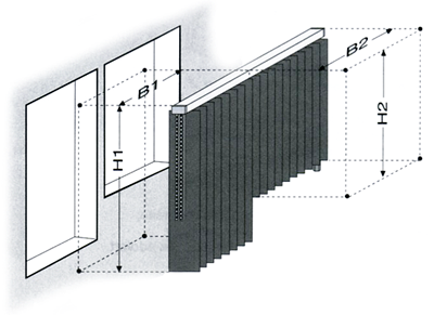 Bestellbreite = Anlagenbreite B (B1 linke Behangseite, B2 rechte Behangseite)