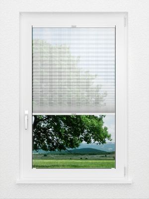 Es kommt immer auf den Blickwinkel an. So auch bei diesem Plisseestoff. Aus der Nähe betrachtet, wird der transparente Stoff von horizontalen hellen Linien durchzogen. Betritt man den Raum, dann empfängt ein geschlossenes Wabenmuster den Betrachter. Dieser freundliche, transparente Plisseestoff kann auch in Küchen oder Badezimmern seinen Platz finden und ist mit einem feuchten Tuch gesäubert schnell wieder der Hingucker im Raum. Dieser feine weiße Farbton erzeugt Reinheit und bringt unbeschwerte Wohnlichkeit an Ihr Fenster, die durch das Wabenmuster noch unterstützt wird. Blau, Rot, Beige oder andere Farben können das Farbthema des Raumes problemlos bestimmen, denn das Weiß passt sich mit Leichtigkeit an.