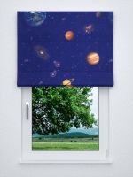 Eine Reise in die Galaxie, einen anderen Blick auf die Welt, das bietet das Design dieses Stoffes. Das Motiv ist auf die Vorderseite aufgedruckt, die Rückseite ist Weiß. Die verschiedenen Planeten wirken hier so nah und greifbar, so groß die Distanz in der Realität auch sein mag. Dazu versprüht der mit Sternen übersäte Himmel ein magisches Flair. Machen Sie eigene Gestaltungsträume wahr und kreieren Sie aus dem Stoff in Meterware individuelle Accessoires. Eine Fensterdeko, etwa ein maßgefertigtes Raffrollo oder ein Gardinenschal nach Maß, wirkt besonders imposant. Der Konfigurator bietet Ihnen viele Möglichkeiten, die Fensterdeko zu Ihrer werden zu lassen. Das lichtdurchlässige Polyestergewebe wurde per Transferdruck gestaltet und trägt zu einem offenen und freundlichen Raumambiente bei. Als Sichtschutz hält der Stoff tagsüber wie abends neugierige Blicke fern.