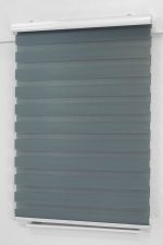 Beim Doppelrollo ist eine Stoffbahn, die abwechselnd transparente und undurchsichtige waagerechte Streifen zeigt, doppelt gelegt. Sie wird von der Rollowelle über einen Beschwerungsstab zum Rolloprofil gelenkt. Es bietet die schnellste und flexibelste Bedienung und eignet sich besonders für solche Orte, an denen oft und schnell Sicht- oder Lichtschutz hergestellt werden muss wie etwa Bäder oder Arbeitszimmer. Die Stoffbahnen werden flexibel gegeneinander verschoben, wodurch Aussicht und Sichtschutz jederzeit ins richtige Mischverhältnis gebracht werden. Die Breite der Streifen ist mit 7,5 cm ausreichend groß gewählt, um fein nuancierte Einstellungen vornehmen zu können. Rollowelle, Stoff und Mechanik sitzen auf dem wertig verarbeiteten Montageprofil mit Blende, welches mühelos an Wand oder Decke montiert werden kann. Die Bedienung geschieht über eine seitlich verbaute Bedienkette. Mit ihr können Sie die Stoffbahnen beim Aufziehen auch gegeneinander verschieben. Die Bedienseite ist frei wählbar. Dekorativ überzeugt das Doppelrollo mit einer modernen Erscheinung, deren Faszination durch die Funktionsweise gut unterstützt wird.