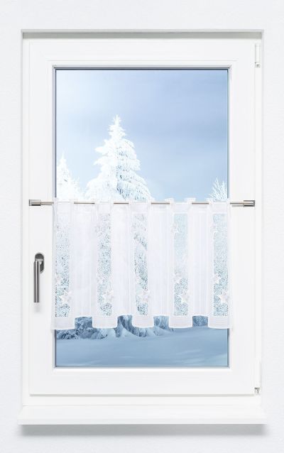 Scheibengardine Plauener Spitze® - Wintersterne #1W silber-weiß 38685